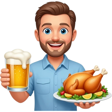 치킨에 맥주한잔 하는 미팅이 생겼어. 치킨이 가운데 접시에 놓여있고, 좌 우에 맥주가있는 이모지를 만들어줘. (인물 필요없음) emoji | AI Emoji Generator
