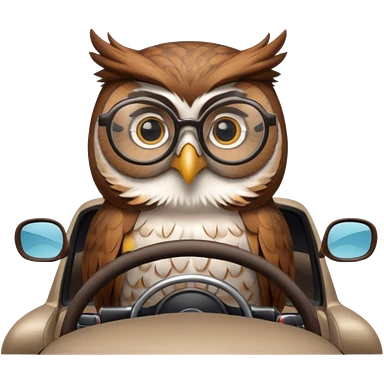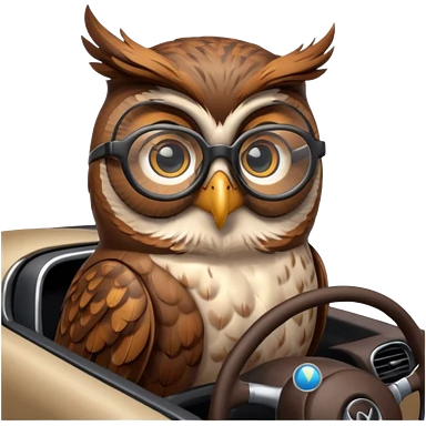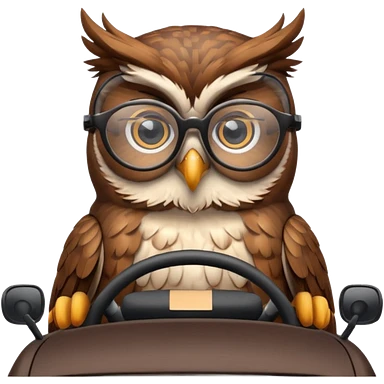 Сова в машине за рулем, в очках, с навигатором emoji