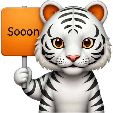 White Tiger. He is holding a sign with SOON - written on it. Let him have 4 paws, not more. emoji
