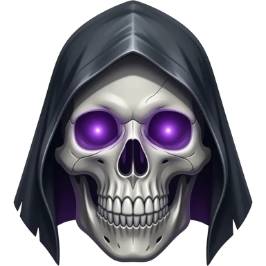 💀 A highly detailed, hand-painted reaper-mask skull, glowing with deep dark-purple energy. emoji