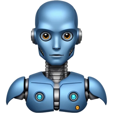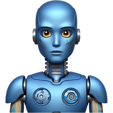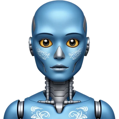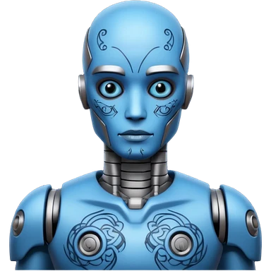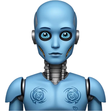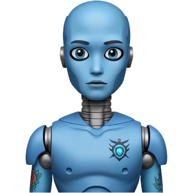 blue Tatooed robot, big many tatooes on chest, neck and face emoji