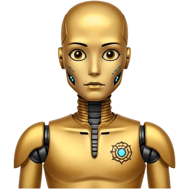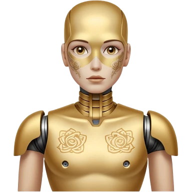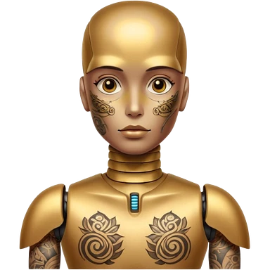 Tatooed robot, tatooes on chest and face emoji