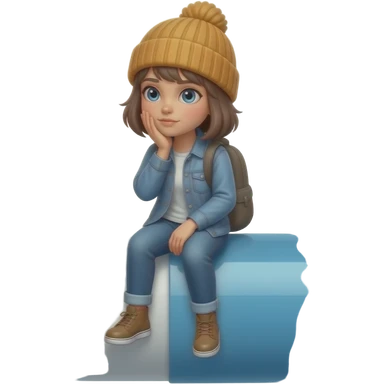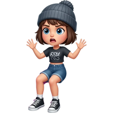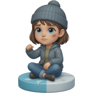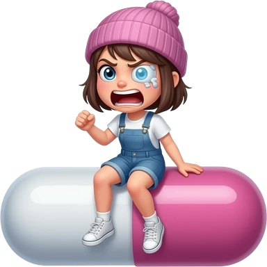 Tomgirl with short hair and beanie is shaking from cold. She is seated on a round Adderall pill. She has one bruise under her eye. emoji