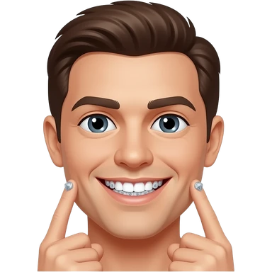 Crea un emoji sonriendo con dientes de diamantes y poniendo un dedo de cada mano en los labios emoji
