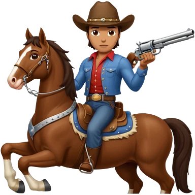 I need a very muscular brunette cowboy riding a large Clydesdale horse shooting a gun in both handles. emoji