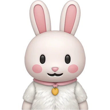 A White grumpy cat with light pink ears and paws and with a bow around its neck. The cat shall be on two legs emoji