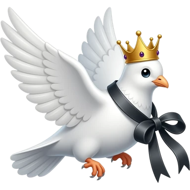 white dove bird flying away with black belt hanging off neck coming from funeral with crown on emoji