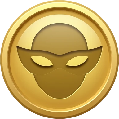 Design a small, round coin icon with a playful, mysterious theme. The coin should have a character silhouette or mask design in the center, symbolizing identity or disguise. Keep the color gold or silver, making it look like a fun, collectible currency. emoji
