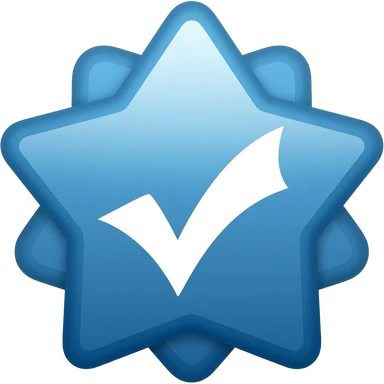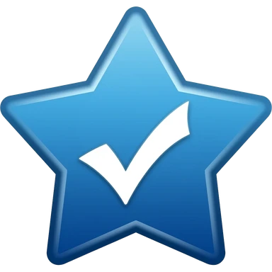 A blue star-shaped badge with smooth, evenly spaced edges and a slight gradient, featuring a bold white checkmark in the center with clean, thick lines emoji