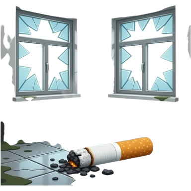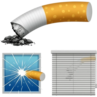 cigarette ashes, black mold, broken windows emoji