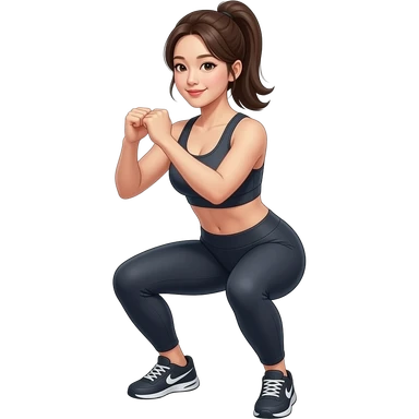스쿼트를 하고 있는 복근 있는 한국 여자 emoji