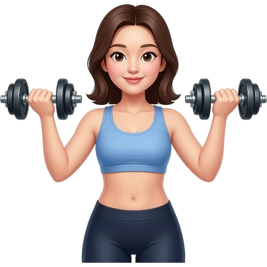 덤벨을 들고 운동하고 있는 복근 있는 한국 여자 emoji