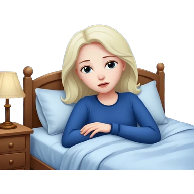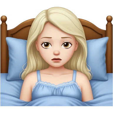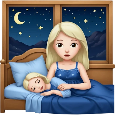 женщина лежит в кровати, у нее "мешки" под глазами, за окном ночь emoji