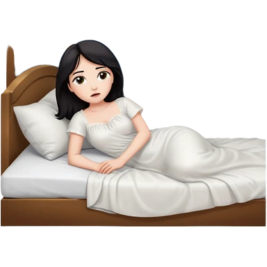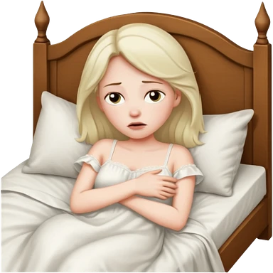 женщина лежит в кровати, она напряжена, за окном ночь emoji