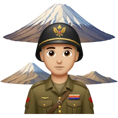 сгенерируй Армянского солдата стоящего спеной и смотрящего на гору арарат киношную картинку хочу emoji