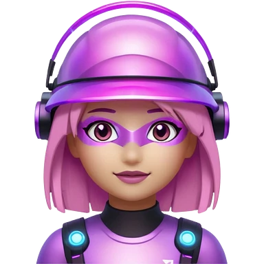 “Futuristic Roblox girl emoji, 2050 style. Pink-purple holo visor, light-strand hair, digital eyes sparkle, metallic pastel glow, neon aura background.” emoji