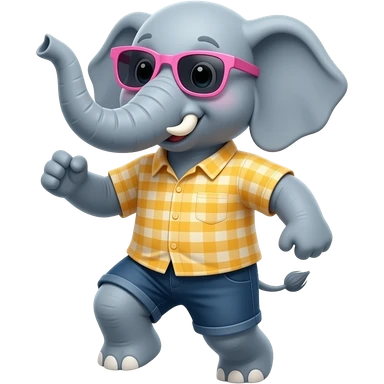 слон в авайській сорочці танцює в рожевих окулярах emoji
