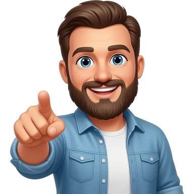 смеющийся бородатый и показывает пальцем вперед emoji