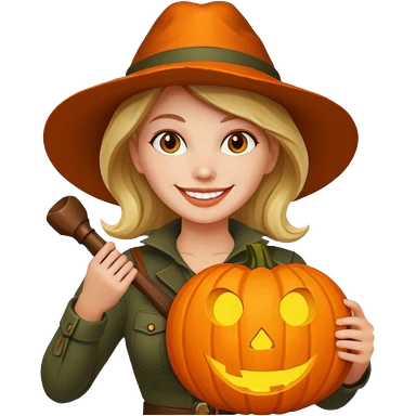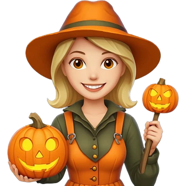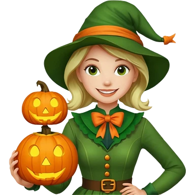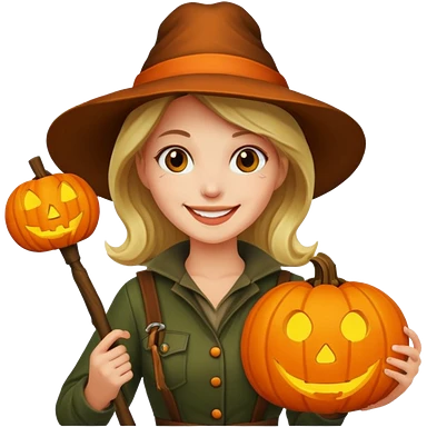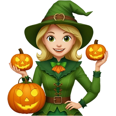 Woman Hunter With Jack o Lantern, wearing green costume emoji