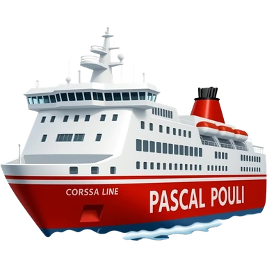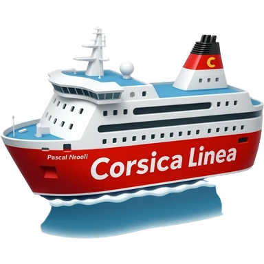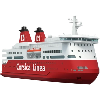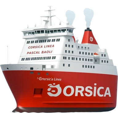 Ferry Corsica linea pascal Paoli rouge et blanc avec un logo Corsica linea et le bateau a deux cheminée emoji