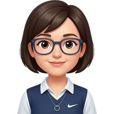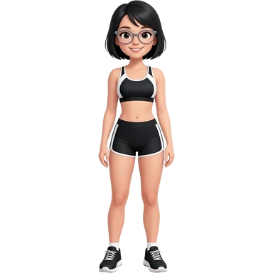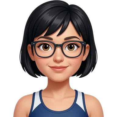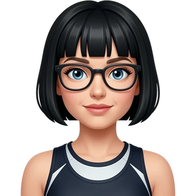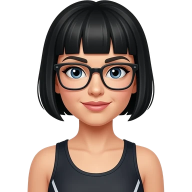 female black short hair in gym uniform wear glasses emoji
