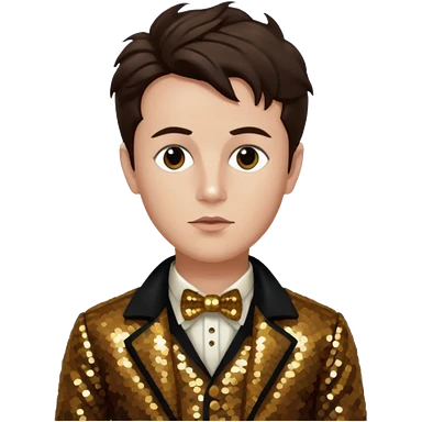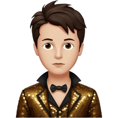 Arthur Rimbaud with dark brown hair, bronze sequin outfit emoji