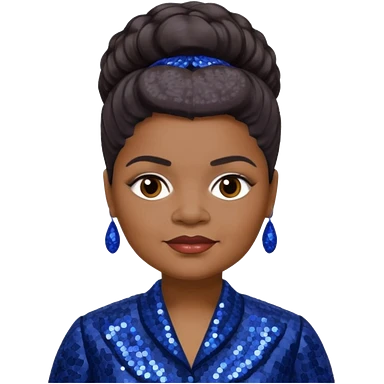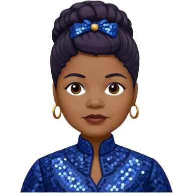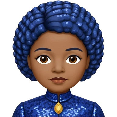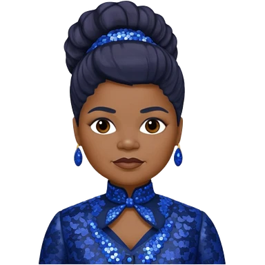 Ida B Wells with dark brown hair, indigo sequin outfit emoji