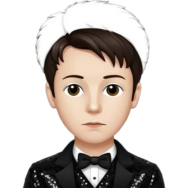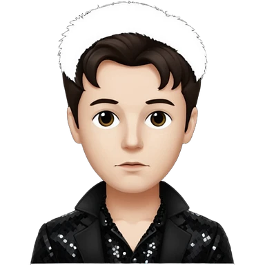 Arthur Rimbaud with dark brown hair, black sequin outfit emoji
