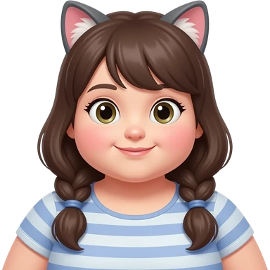pink cheeks, smaller Blue eyes, fair skin, longer blonde/brown hair pony tail, 38 aged women, cardigan, grey top,small necklace, emoji