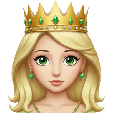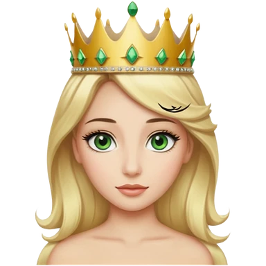 Emoji d’une femme blonde aux yeux en amande vert avec de long cils noir et une couronne avec écrit Princesse Elite emoji