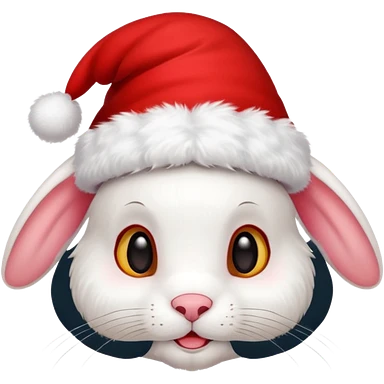 white rabbit with ears in a christmas hat emoji