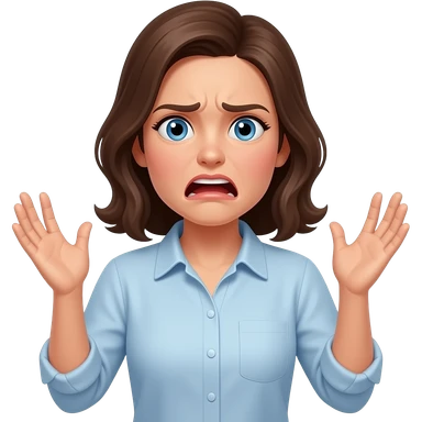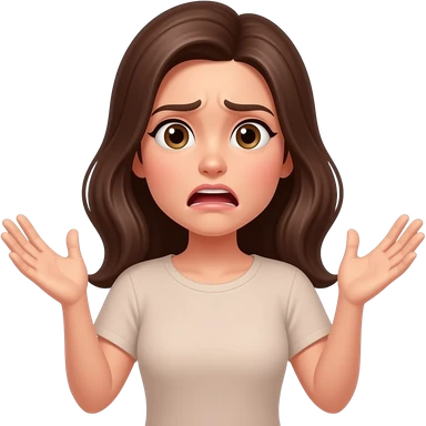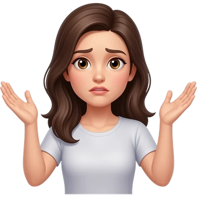 Женщина возмущенна и не понимает, разводит руками, ладони вверх, не знает emoji