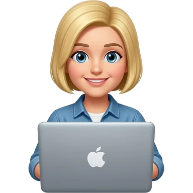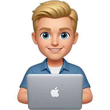 Блондин сидит за ноутбуком apple c короткой стижкой emoji
