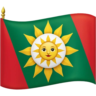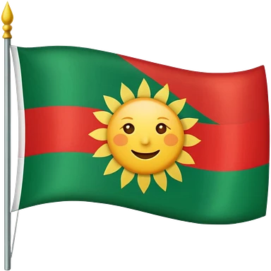 3 şeritli bir bayrak en üst şeriti kırmızı ortadaki şerit beyaz en alttaki şerit yeşil olcak şekilde ama ortadaki beyaz alanın ortasına güneş çiz emoji