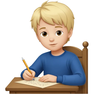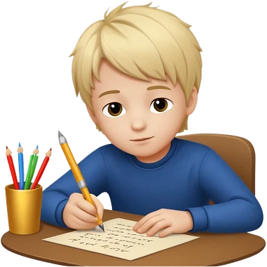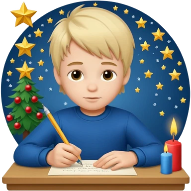 маленький мальчик со светлыми волосами переписывает желания на новый год на письмо emoji