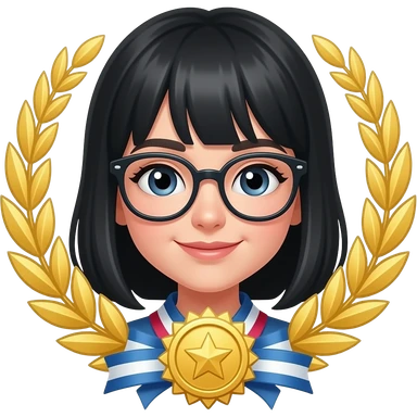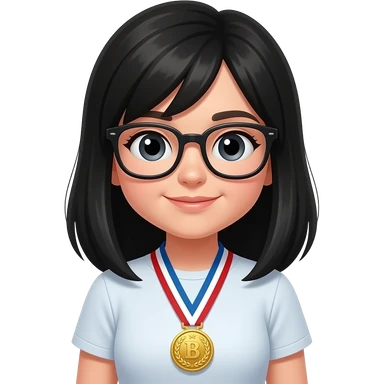black haired girl wearing glasses with prizes emoji