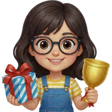 black haired girl wearing glasses with gifts and prizes emoji