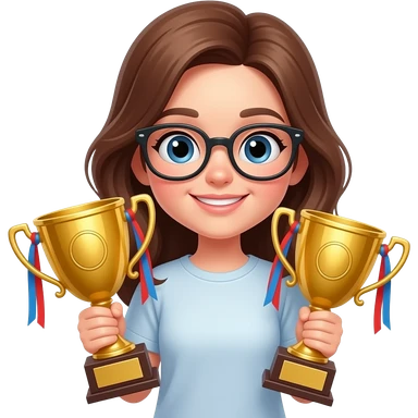 brown haired girl wearing glasses with prizes emoji