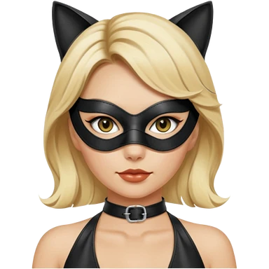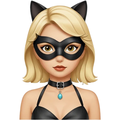 blonde woman with leather cat eye mask and leather halter neck blouse emoji