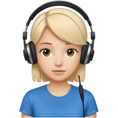 Female, shy, wearing headphone having mic, t-shirt emoji