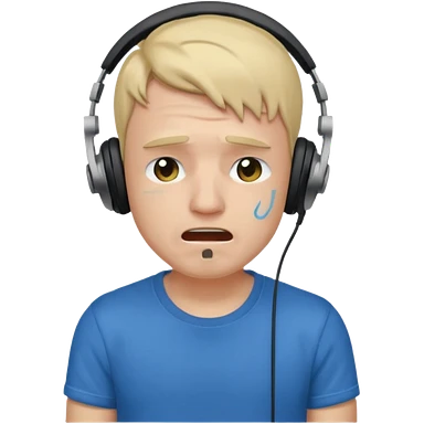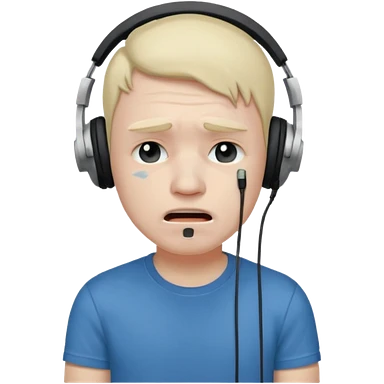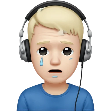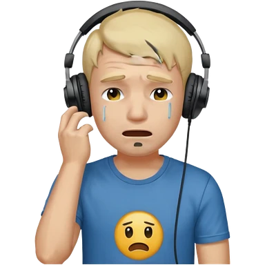 Male, crying, wearing headphone having mic, t-shirt emoji