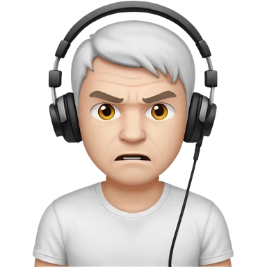 Male, angry, wearing headphone having mic, t-shirt emoji