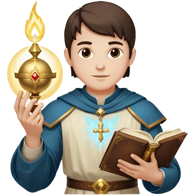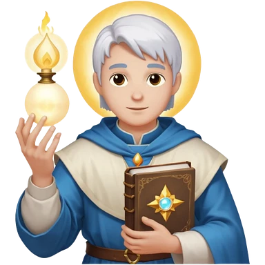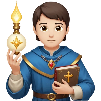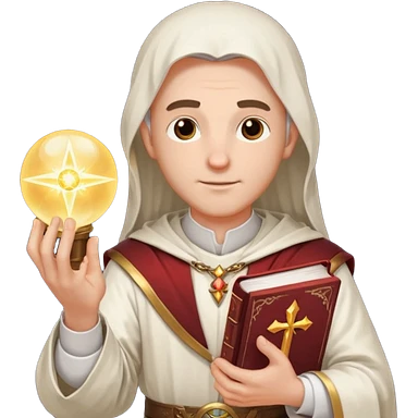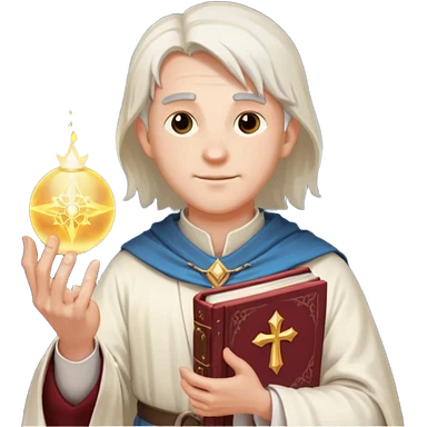 dnd cleric holding a holy book in one hand and having a ball of light in the other emoji