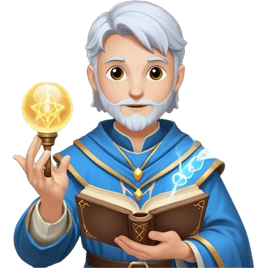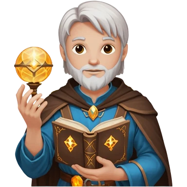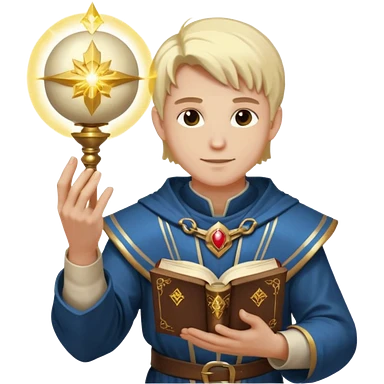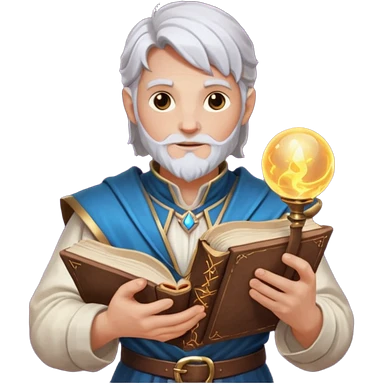 dnd cleric holding a magic book in one hand and having a ball of light in the other emoji