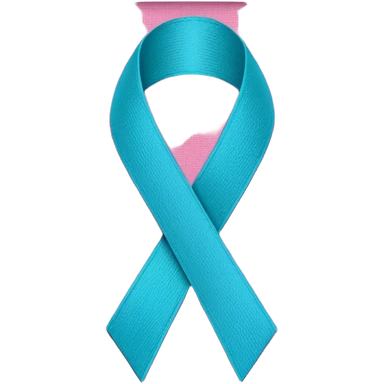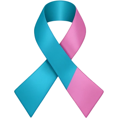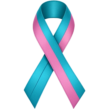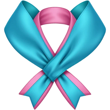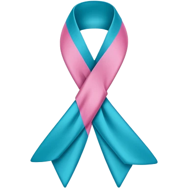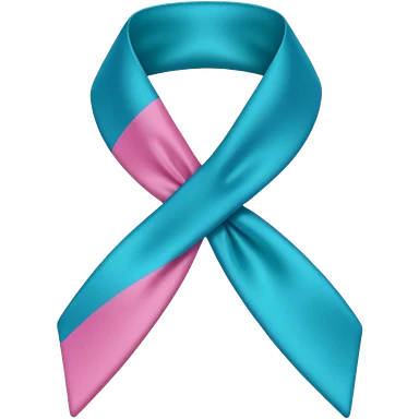 Thyroid cancer ribbon which has a blue strand, a pink strand and teal at the top where the ribbon crossed over emoji
