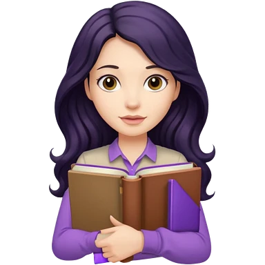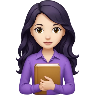 Long Hair Women with purple Book, Black wavy hair, beige shirt emoji