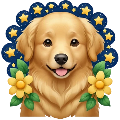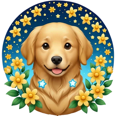 собака з квітами та зірками emoji