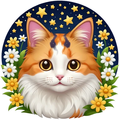 кіт з квітами та зірками emoji