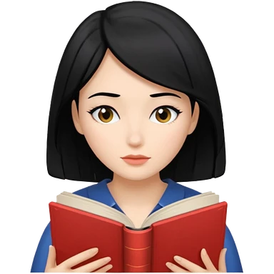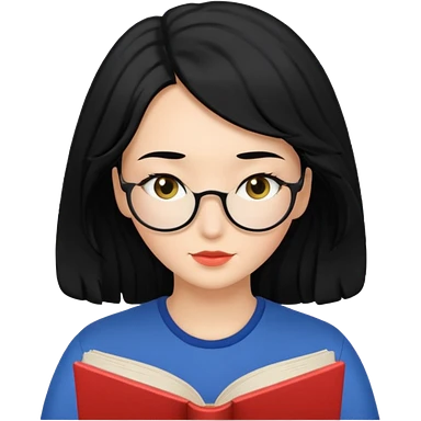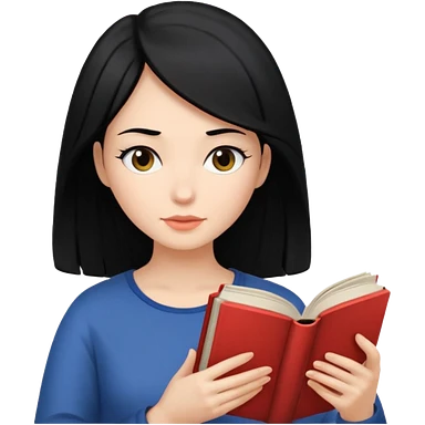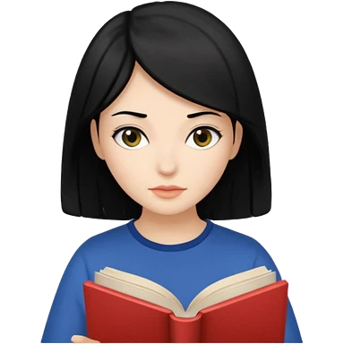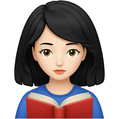 검정머리에 책읽고있는 여자. 해줘. 그리고 그 책으로 얼굴 반은 가린듯한 머리는 약간 파마 앞머리 없고 그리고 너무 무섭게 말고 책 읽는다고 얼굴 반은 가린듯한 emoji
