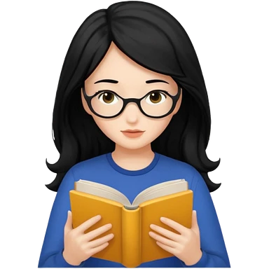 검정머리에 책읽고있는 여자. 해줘. 그리고 그 책으로 얼굴 반은 가린듯한 머리는 약간 파마 앞머리 없고 그리고 너무 무섭게 말고 책 읽는다고 얼굴 반은 가린듯한 책은 흰색에 보라색 노란색 섞여있고. 약간 미소 상의는 흰옷 . 아이폰 이모티콘 형태로 부탁 emoji